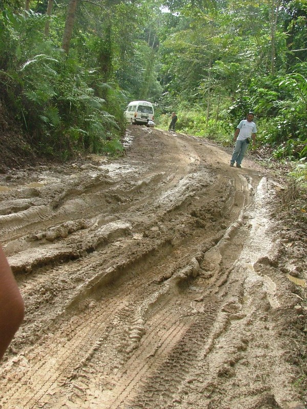 The night before our safari, not really knowing what all we could expect, we packed what we thought we would probably need, and went to bed. The next morning, well before the generator’s 7 am start-up, we rose in pitch darkness, dressed and walked down to our meeting point, finding Simon and John ready for our joint adventure. Soon, dawn started to diffuse some visibility into the day, and shortly after, Johnny arrived with the Centre’s rugged Toyota 4WD. We stowed our luggage, squeezed ourselves in and we were off on our two-hour, 77 km descent to Lahad Datu, the local provincial town on Darvel Bay. The vehicle was a lot better than the one we came up in ten days earlier, but the road was if anything worse, and Johnny drives like every other Malaysian driver: fast, by our standards recklessly, but also very competently. Perhaps in order to make us feel comfortable with his driving skills, he did not wear his seat belt.